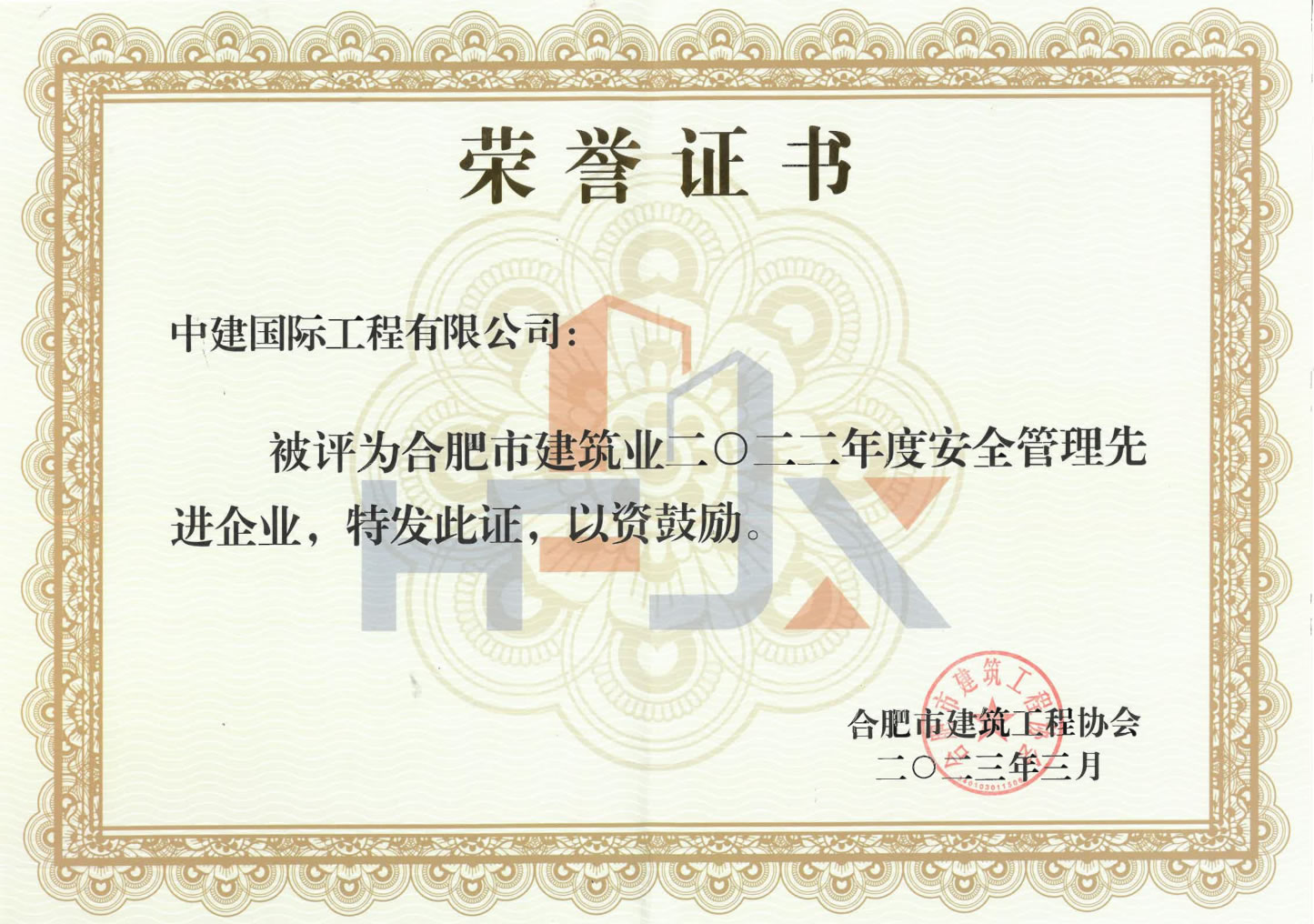 2022年度合肥市安全管理先进企业-合肥市建筑业协会