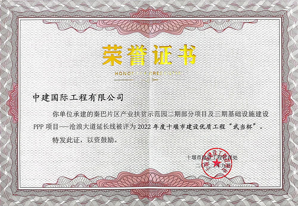 项目-2022武当杯证书-郧阳秦巴产业园项目沧浪大道延长线
